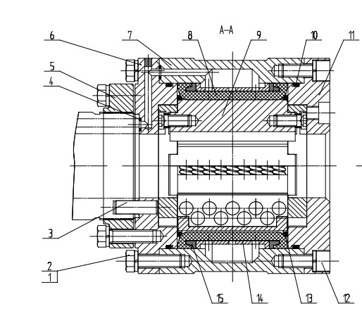 重庆煤科院钻机的液压胶套卡盘为液压夹紧,弹簧松开的常开式。液压系统中采用了液压保压油路,当卡盘夹紧-松开功能选择阀置于夹紧位,开机后,小泵输出的压力油经顺序阀(作背压)的作用下,卡盘处于常闭状态。卡盘的夹紧力随着联动钻进时的旋转油路或推进油路压力增高而增大。